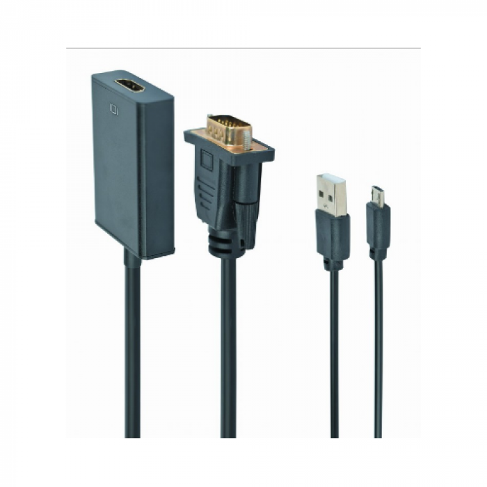 Adaptor VGA la HDMI (T/M), 0.15m, up to 1080P/60Hz, GEMBIRD, black, "A-VGA-HDMI-01" A-VGA-HDMI-01