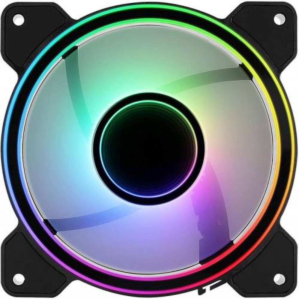 Set 3 ventilatoare Aerocool Mirage 120mm iluminare aRGB, iluminare LED RGB (28 LED-uri), rulmenti de tip Hydraulic Bearing, 1300 RPM, 45.7 CFM, 17.8 dBA, 1.52 mmH2O, cablu plat, dimensiuni: 120x120x25mm, conectori: 6pin, MTBF: 60000h, include controller aRGB H66, suporta maxim 6 ventilatoare si 2 accesorii aRGB, include telecomanda