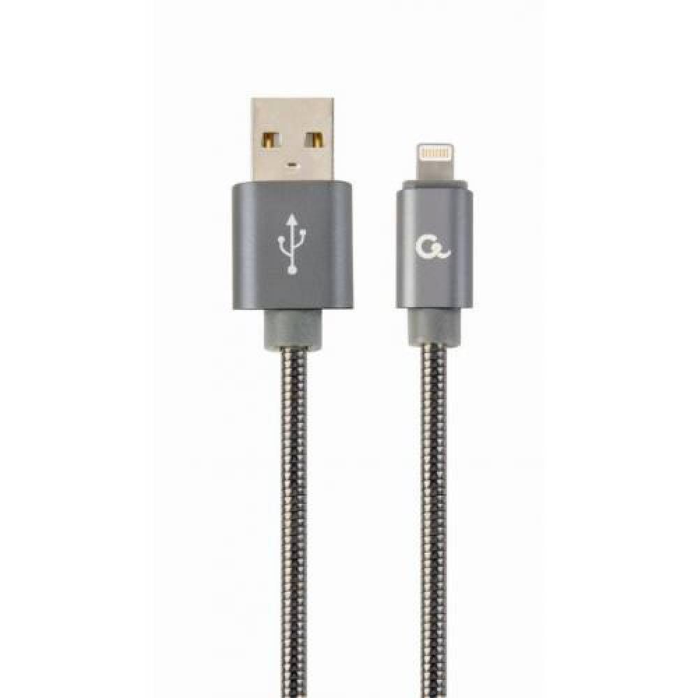 Gembird Premium spiral metal 8-pin charging and data cable, 1m, metallic-grey CC-USB2S-AMLM-1M-BG