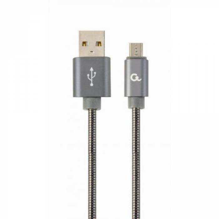 Gembird Premium spiral metal Micro-USB charging and data cable, 1m,metallic-grey CC-USB2S-AMmBM-1M-BG