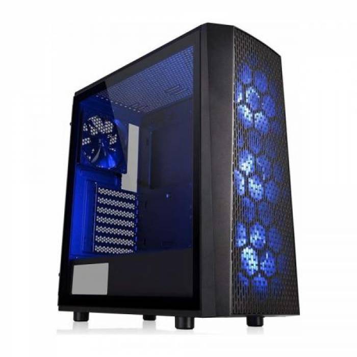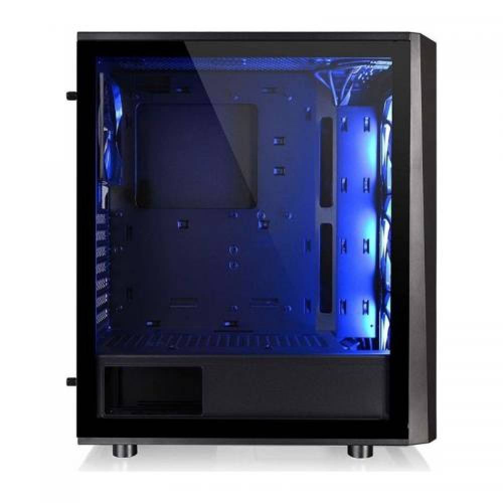 Thermaltake Versa J24 Tempered Glass RGB, SPCC Steel ATX Mid Tower, fara sursa (tip ATX, montata jos), interior vopsit negru, design premium cu panou lateral din sticla securizata, 2x2.5