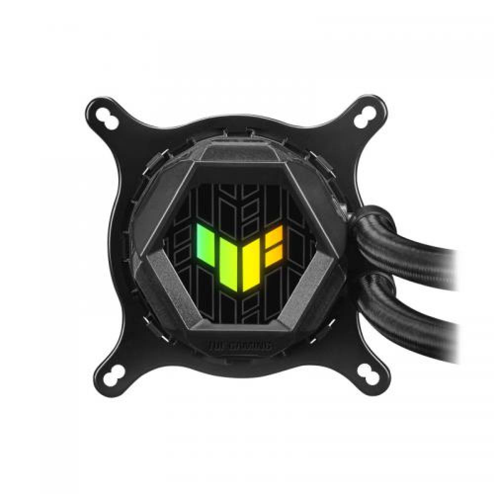 Cooler CPU Asus Asus TUF Gaming LC 240 ARGB Water Block Water block dimention:80 x 80 x 45 mm Block Material (CPU Plate):Copper Radiator Radiator Dimension: 122 x 150 x 27 mm Radiator Dimension: 121 x 272 x 27 mm Radiator Material: Aluminum Tube: Sleeved Rubber tube Tube Length: 380 mm Fan Fan:TUF GAMING FAN MODEL 12 ARGB - Size: 2 x Fan Slots (120mm) - Dimension:120 x 120 x 25 mm - Speed: 800 - 2000 RPM +/- 10% - Static Pressure:3.0 mmH2O - Air Flow: 67 CFM / 113.8 m3h - Noise: 29 dB(A) - Control Mode: PWM/ DC Special Features AURA Sync Support:Yes Compatibility Intel: LGA 1150, 1151, 1152, 1155, 1156, 1200, 1366 Intel: LGA 1700, 1200, 115x AMD: AM4 Package Content 1 x Liquid Cooler (pre-applied thermal compound) 2 x 120 mm ARGB Radiator Fan 1 x 1-to-2 Fan Splitter Cable 1 x 1-to-3 ARGB Splitter Cable 1 x Accessory Pack of Screws and Brackets 1 x Quick Start Guide 1 x TUF GAMING Sticker https://www.asus.com/Motherboards-Components/Cooling/TUF-Gaming/TUF- GAMING-LC-240-ARGB/techspec/