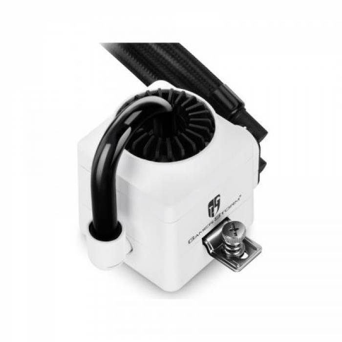 Gamer Storm Captain 120 EX White, sistem pre-umplut cu lichid, ventilator 120mm Hydro Bearing (500-1800 RPM, 76.52 CFM, 17.6-31.3 dBA, 3.31 mmH2O, PWM), pompa silentioasa (2200 RPM), dimensiuni radiator: 154 x 120 x 27mm, compatibilitate: AMD AM2, AM2+, AM3, AM3+, FM1, FM2, FM2+ / Intel LGA1150, LGA1151, LGA1155, LGA1156, LGA1366, LGA2011, LGA2011-V3