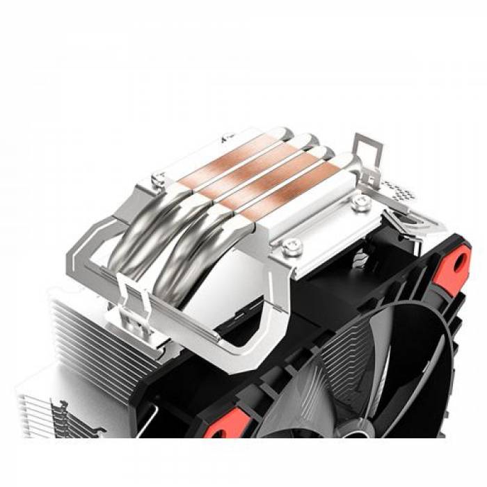 Cooler procesor ID-Cooling SE-214 iluminare rosie, 4 heatpipe-uri direct touch de 6mm, putere de racire de pana la 150W TDP, 1x 120mm Hydraulic Bearing RED LED fan (600-2200RPM, 71.2 CFM, 2.16mmH2O, 14-35 dBA, PWM), compatibil Intel LGA1700/1200/1150/1151/1155/1156 / AMD AM4/FM2+/FM2/FM1/AM3+/AM3/AM2+/AM2, dimensiuni: 123x75x153mm, greutate: 750g