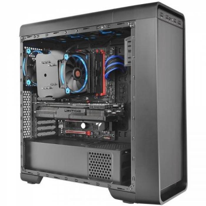 Thermaltake Riing Silent 12 Pro Blue, 5 heatpipe-uri de 6mm, putere de racire de pana la 170W TDP, 120mm Hydraulic Bearing fan (500-1400 RPM / 300-700 RPM folosind cablul Low Noise -LNC- inclus, 53 CFM, 19 dBA / 12 dBA cu LNC, 1.23 mm-H2O, 11 pale, PWM + LNC), compatibil Intel LGA775, LGA1150, LGA1151, LGA1155, LGA1156, LGA1366, LGA2011, LGA2011-3, LGA2066 / AMD AM2, AM2+, AM3, AM3+, FM1, FM2, AM4, dimensiuni: 140x102x160mm (L x W x H)