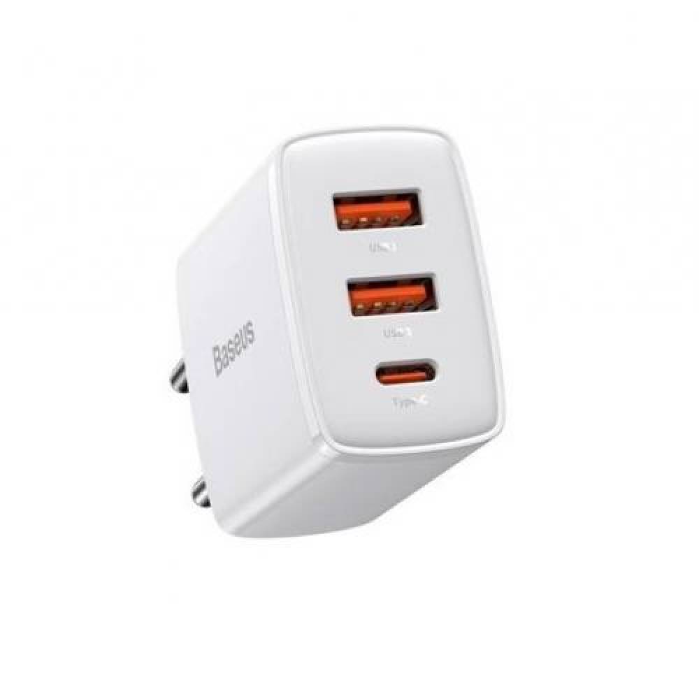 INCARCATOR retea Baseus Compact, Quick Charge 30W, 2 x USB 5V/3A, 1 x USB Type-C 5V/3A, alb "CCXJ-E02" (include timbru verde 0.75 lei) - 6953156207301 CCXJ-E02