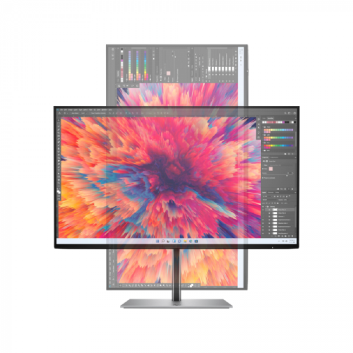 Monitor 23.8" HP Z24Q G3, LED, IPS, QHD 2560x1440, 16:9, 90Hz, 4 ms, 400 cd/m², 1000:1 static / 10000000:1 dinamic, 178°/178°, 1x DP 1.4/ 1x HDMI 2.0/ 4x USB Type-A/ 1x USB Type-B, Swivel: ±45°; Tilt: -5 to +20°; Pivot rotation: 90°; Height adjustment: 150 mm, VESA 100x100, Black & Silver
