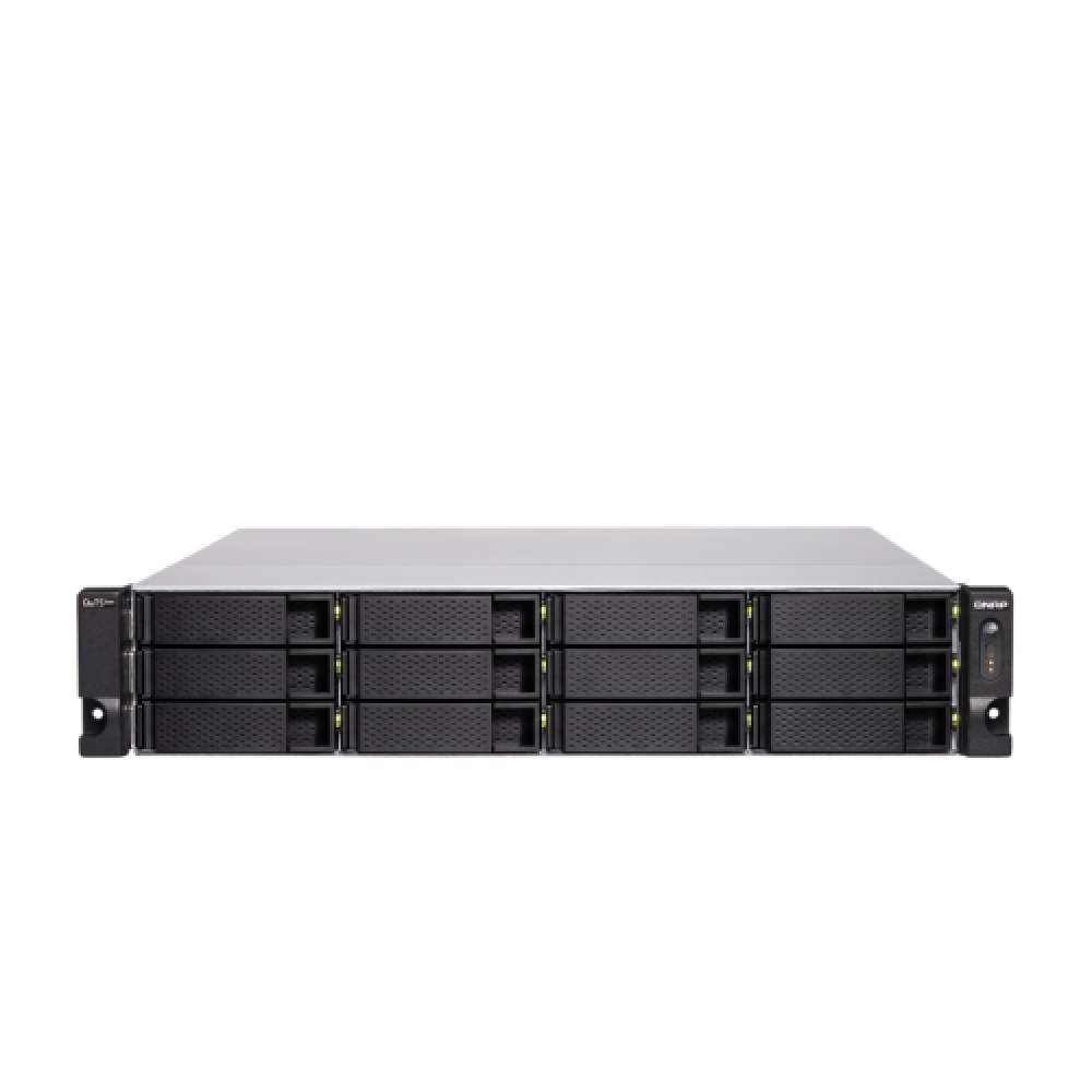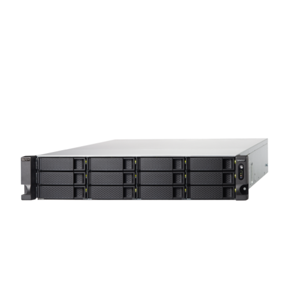 The 2U rackmount TS-h1886XU-RP provides twelve 3.5-inch SATA 6Gb/s drive-bays, six 2.5-inch SATA 6Gb/s SSD slots, and features an Intel Xeon D processor with up to 128 GB DDR4 Error correcting Code (ECC) memory to realize server-grade performance with dependable reliability. The pre-installed dual-port 10GbE SFP+ network card not only empowers bandwidth-demanding applications but also supports RDMA/RoCE to improve performance and lower CPU usage. With the ZFS-based QuTS hero operating system, the TS-h1886XU-RP ensures data integrity and supports block-level inline data deduplication and compression, near-limitless snapshots, and real-time SnapSync. Whether for mission-critical file servers, virtualization servers, collaborative video editing, or efficient data backup and recovery applications, the TS-h1886XU-RP delivers a high-performance yet cost-effective NAS solution.
