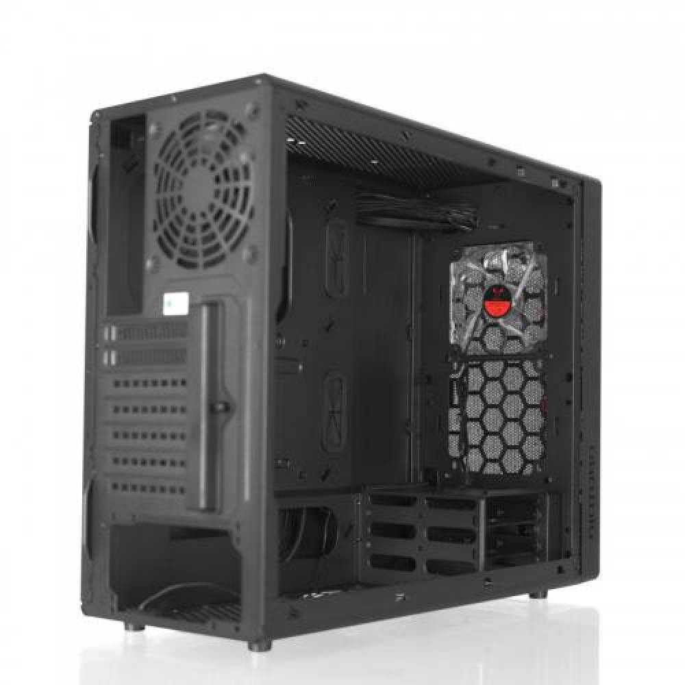 Carcasa Riotoro CR488 neagra, SPCC Steel ATX Mid Tower, fara sursa (tip ATX, montata jos), interior vopsit negru, 3x 3.5" (intern), 2x 2.5" (intern), fata - 1x 120mm RED LED fan (inclus) / 1x 120mm / 1x 140mm (optional), spate - 1x 120mm fan (inclus), tavan