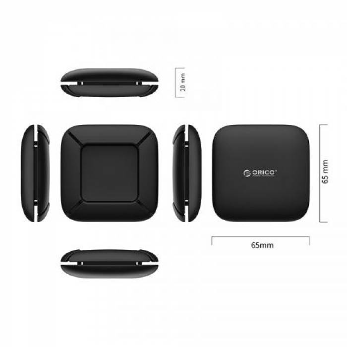 Suport casti tip dop Orico ELR1 negru, suport din silicon pentru castile de tip dop, se poate folosi pentru a infasura cablul in jurul lui pentru a proteja castile, mufa si cablul, compatibil cu orice tip de casti tip dop cu fir, dimensiuni: 65x65x20mm